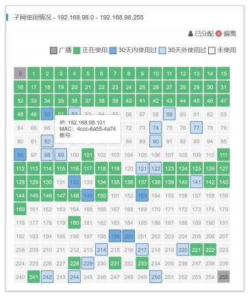 IP地址规划联动实况,地址段使用率实时动态展现
