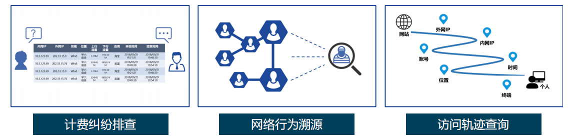 计费纠纷排查:用户对流量使用情况存疑,管理员可以根据用户账号和时间范围,查询用户的流量详单,清晰指出用户在哪里、使用什么设备、访问了什么,以及是否有账号盗用的可能。