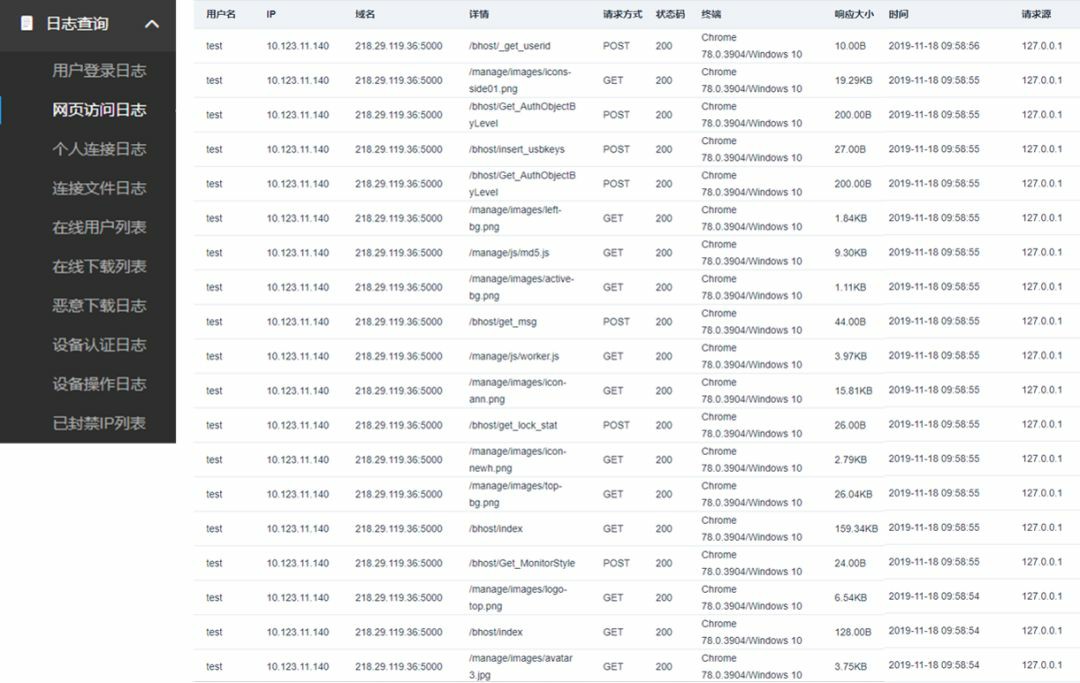 6. 完备日志 传统VPN仅记录简单的用户登录日志,而本系统除该日志外,更有: