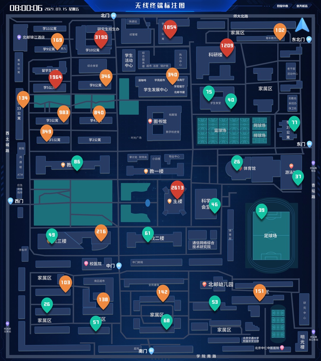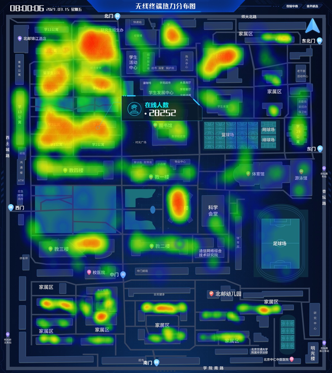 一目了然校区人群分布,快速定位人群聚集区域。