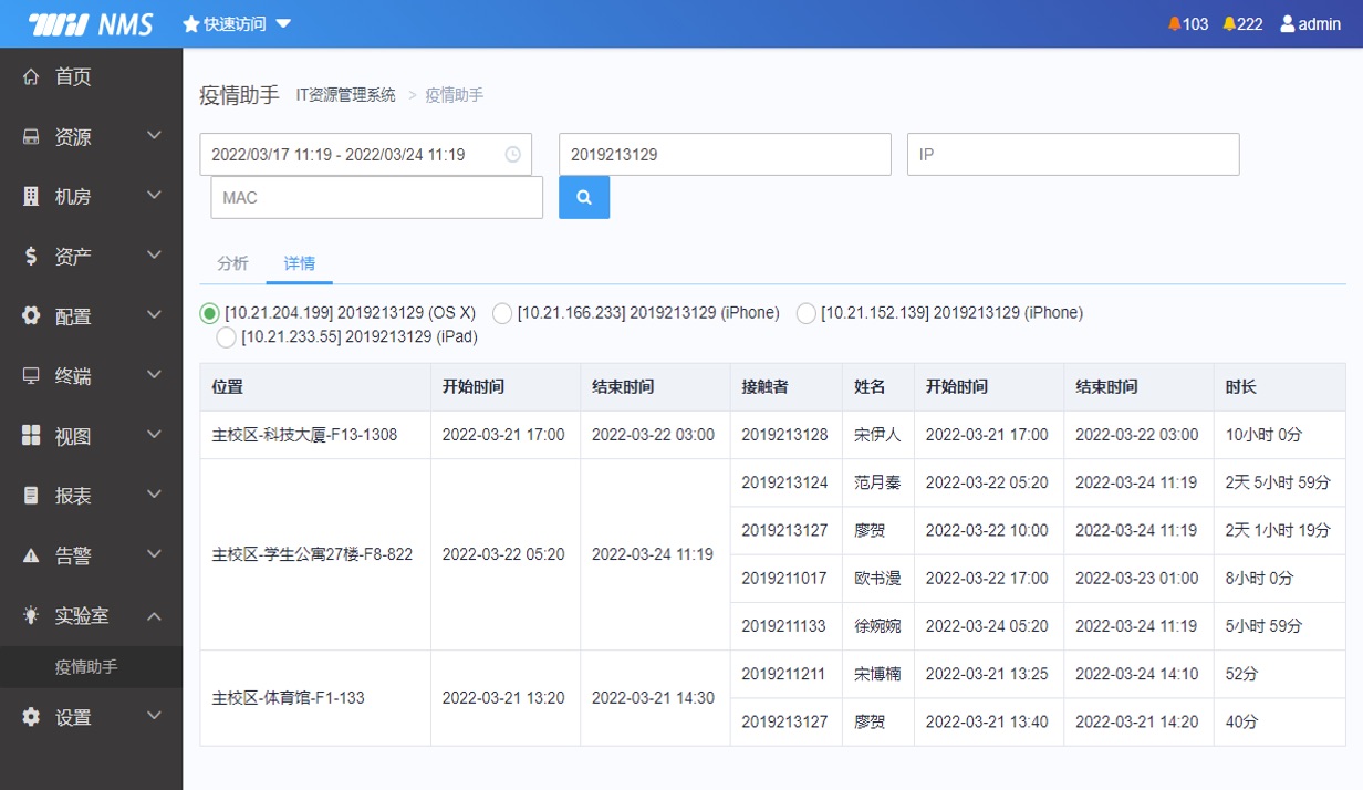 密接筛查列表