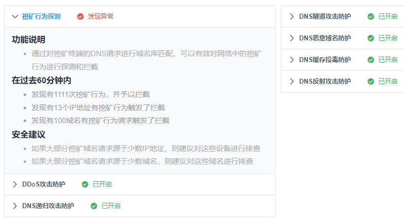 采用DNS系统来解决“挖矿问题”,无需终端安装Agent,不需要改动网络,即快速实现对全校师生、有线无线网、数据中心服务器的全面保护。不仅如此,除了禁止“挖矿域名”外,DNS系统还能阻断用户对其它各类威胁域名、病毒木马、恶意程序的访问,为您的网络保驾护航。