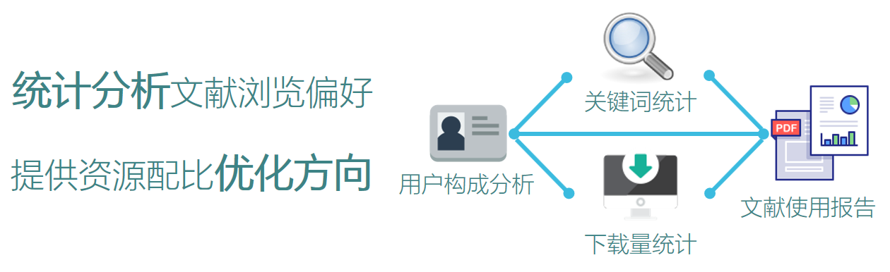 网瑞达Web 发布与管理系统与LDAP/RADIUS 对接,内外网用户统一通过代理服务器访问,统一认证身份,代理服务器精确统计用户身份、相关搜索关键词和文献下载,对图书馆资源使用情况全面统计与分析,可生成相关分析报告,为决策者提供资源配比优化方向。