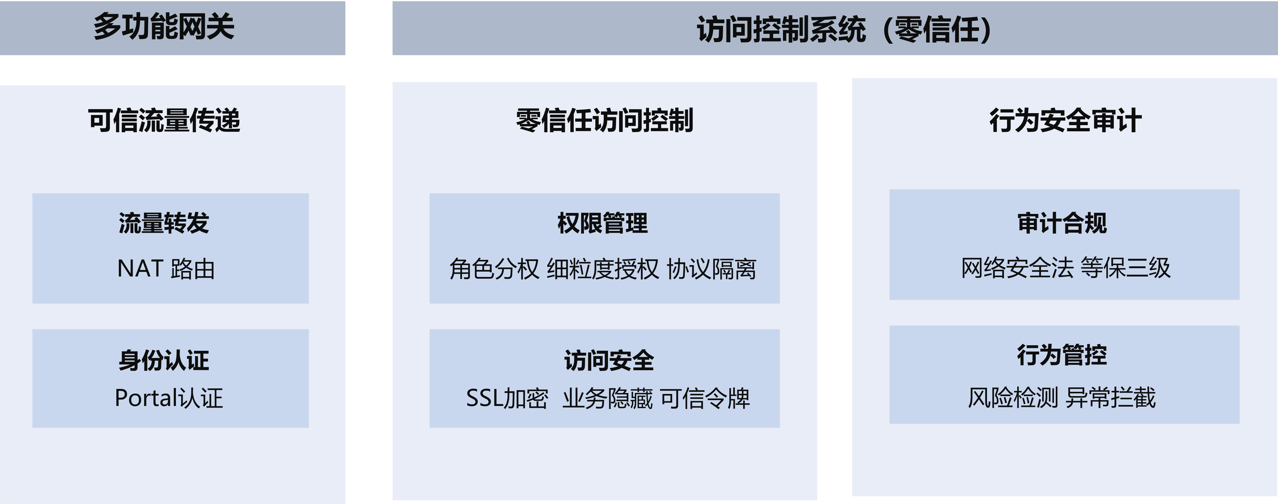 此外,网瑞达多功能网关加零信任资源访问控制系统还提供了无感知认证、专网访问控制、精准溯源、阻断恶意攻击、记录全量日志等功能,极大保障5G虚拟校园网的安全。